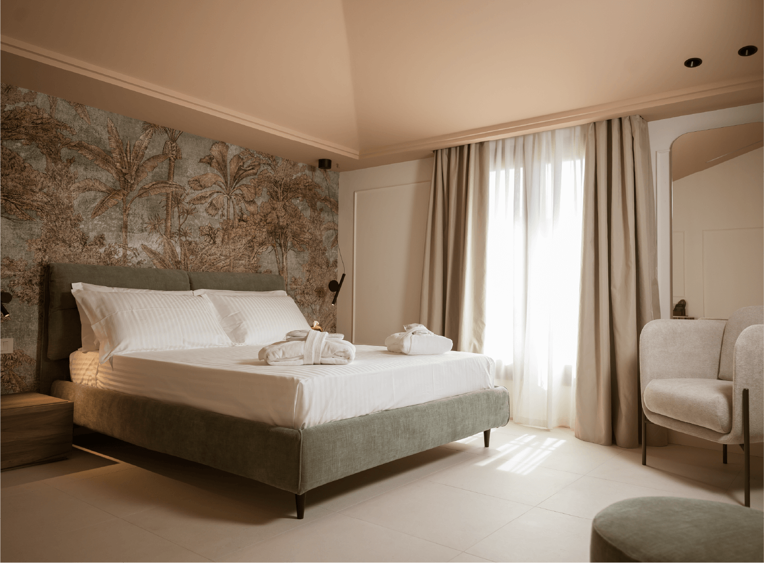 Tra il verde rigoglioso del giardino e l’eleganza raffinata della piscina, ogni angolo invita a fermarsi, respirare e lasciarsi avvolgere da atmosfere di puro relax.