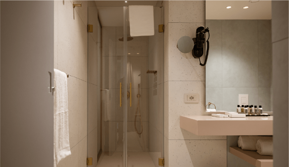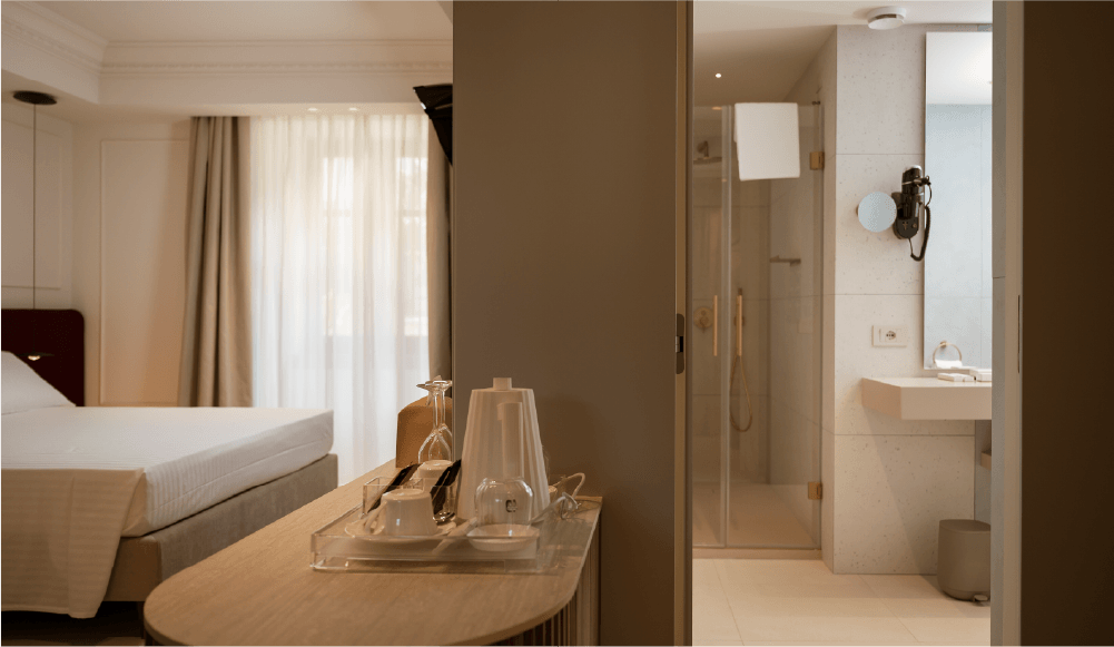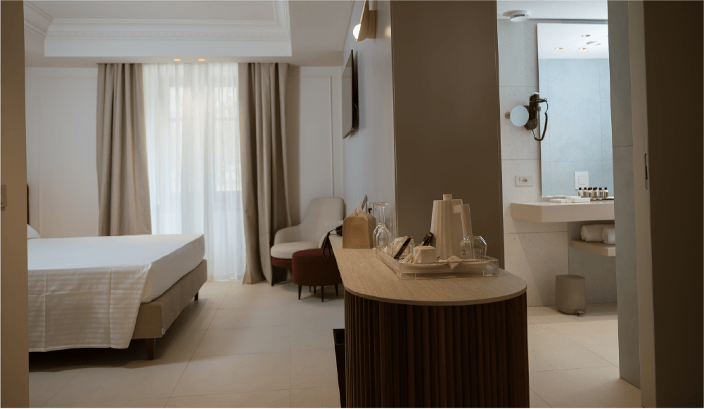 Reception h 24 / Couverture / Concierge dedicato / Room service / Breakfast Room service / Ristorante / Bar e lounge / Sala lettura / Piscina e solarium all’aperto / Area fitness all’aperto (prossimamente) / Area bambini all’aperto(prossimamente) / Parcheggio privato esterno / E-bike